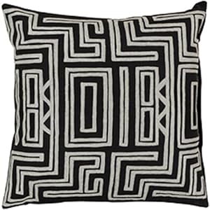 Diva At Home 18″ Ivory White and Midnight Black Geometric Cotton Decorative Throw Pillow